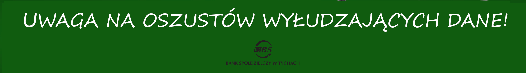 Zapoznaj się z ostrzeżeniami na stronie https://www.bstychy.com.pl/aktualnosc/uwaga-na-oszustow-podszywajacych-sie-pod-pracownikow-banku-polskiej-spoldzielczosci-knf-lub-policji/